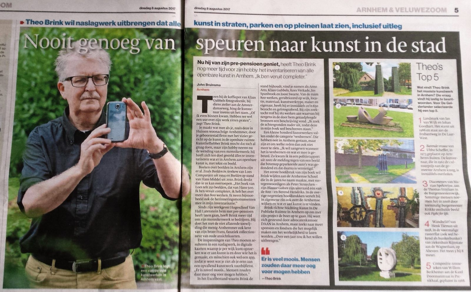 Kort na oprichting van de Stichting verschijnt er in de Gelderlander editie Arnhem & Veluwezoom (bereik ± 30.000 personen) een uitgebreid artikel van de hand van journalist John Bruinsma over de start van het project Kunst in de Publieke Ruimte in Arnhem.