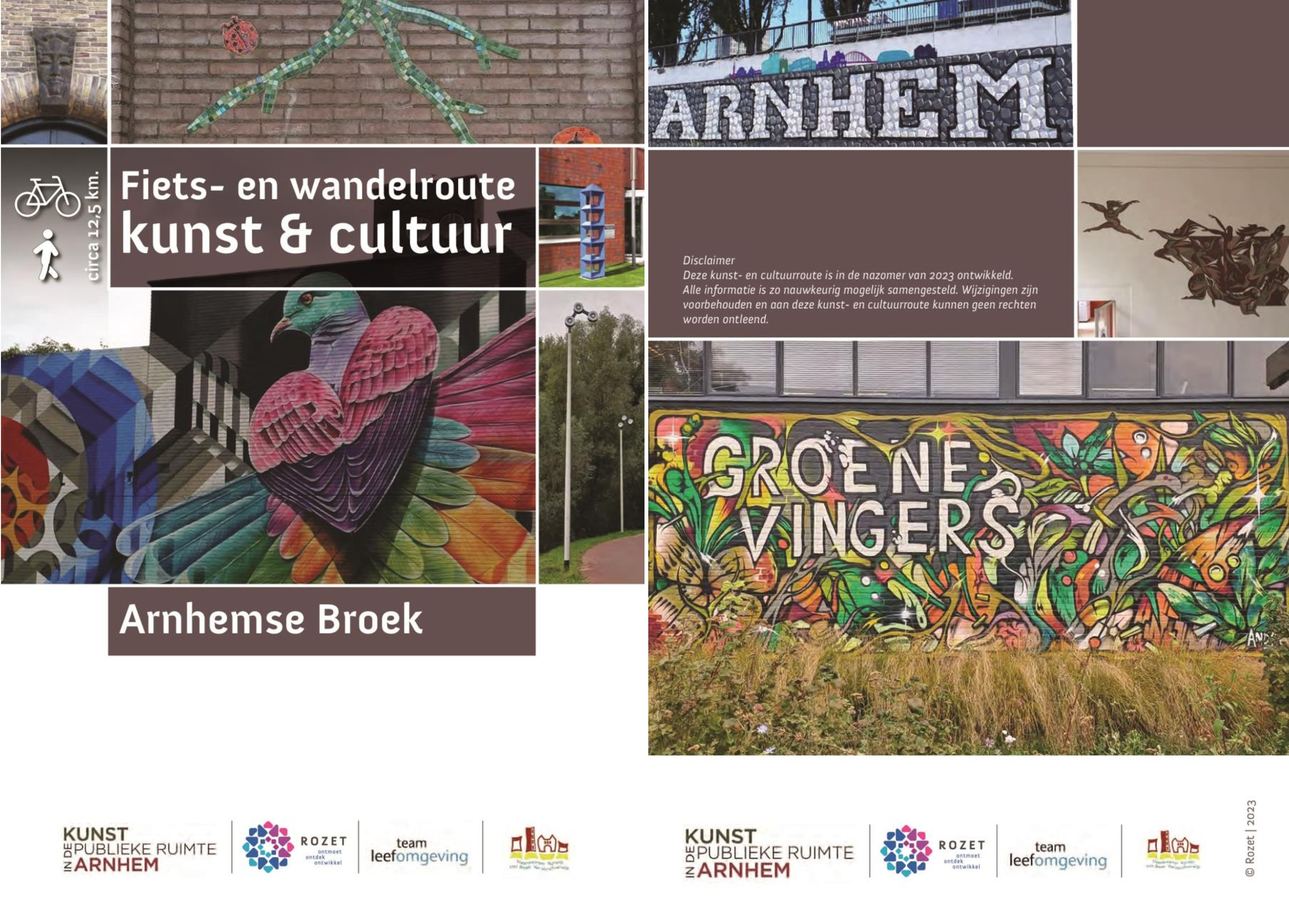 Wie veel van de mooie stad Arnhem wil laten zien, kan dat het beste doen door wandel- en fietsroutes door de stad te maken. In dit geval routes die langs publieke kunstwerken en opvallende cultuurobjecten gaan, kriskras door de stadswijken. Onderstaand kun je de routes die al gereed zijn in alfabetische volgorde vinden. De nieuwste route, de 20e, is de themaroute Parkenstad Arnhem en gaat langs en door alle parken van Arnhem. Deze wordt de 1e week van maart 2026 uitgebreid verspreid in Arnhem. De laatste wijkenroute is Presikhaaf, deze gaat waarschijnlijk in de zomer 2026 live. Daarna resteert als Arnhemse wijk alleen nog Arnhem-Centrum, dat is immers ook een 'wijk'. Hierover zijn al definitieve en concrete afspraken gemaakt, planning gereed medio 2026. Op dat moment heeft elke Arnhemse wijk zijn eigen kunst- en cultuurroute.